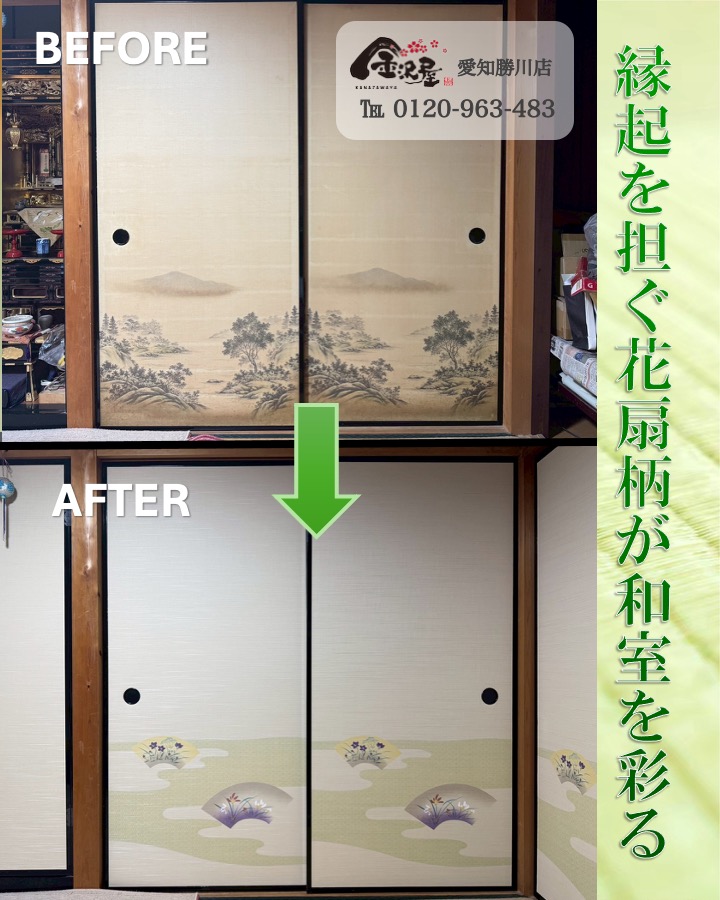 こんにちは。金沢屋 愛知勝川店です。 今回は、春日井市のお客様宅で行った襖の張替え事例をご紹介します。 「和室がなんとなく暗く見える」「襖の汚れや色あせが気になる」「張り替えるだけで本当に印象は変わるの?」 このようなお […]
